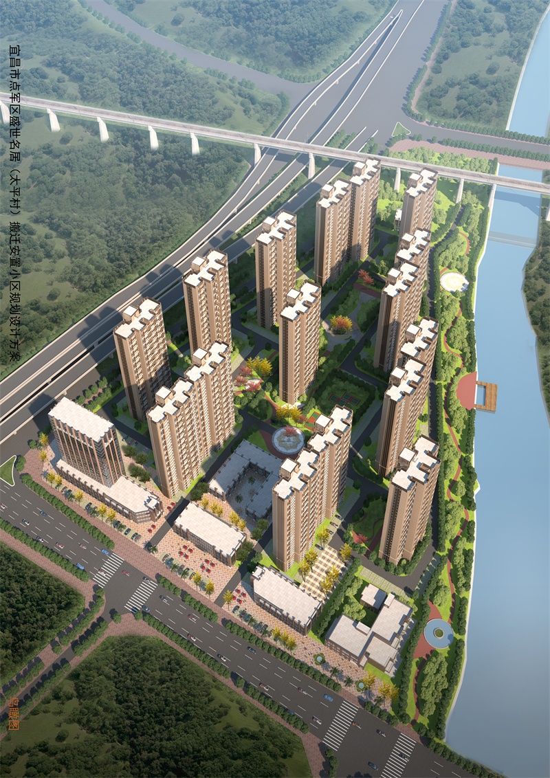 小區(qū)位于點軍區(qū)太平村,占地101.54畝,總建筑面積為272691.72平方米,其中住宅建筑面積為196042.54平方米,商業(yè)面積為7497.3平方米,綜合樓面積為11309.04平方米,配套公建面積為8565.96平方米,總投資約為7.6億。容積率3.3,綠地率31%,安置戶數(shù)1852戶。共有16棟單體建筑,其中11棟28~31層高層住宅,配備了幼兒園、村民禮堂、菜市場、綜合樓、村民活動中心、商業(yè)街及配套配電室、球場等配套設(shè)施,共設(shè)停車車位1500個。