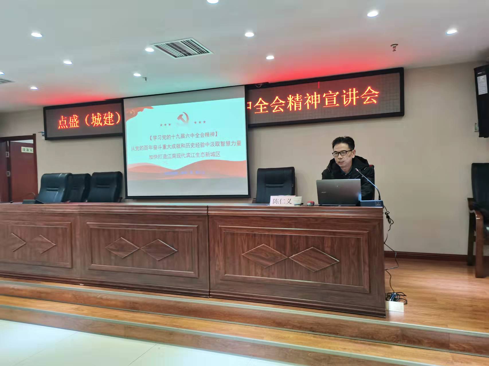 (通訊員:胡瑞文、嚴薇)為深入學習貫徹黨的十九屆六中全會精神,12月30日,區(qū)委宣講團成員陳仁義為點盛(城建)公司全體職工進行黨的十九屆六中全會精神宣講。