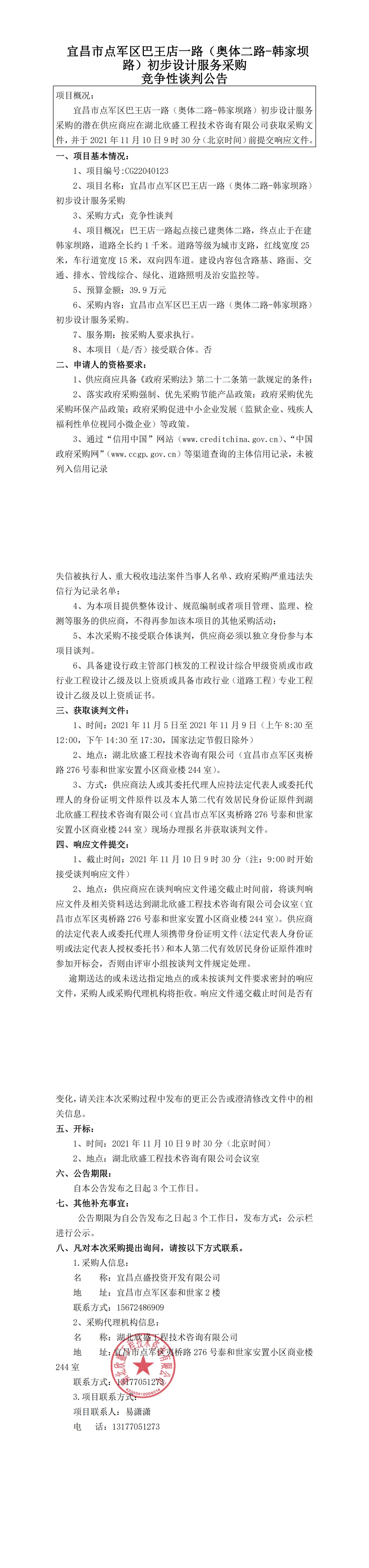 宜昌市點(diǎn)軍區(qū)巴王店一路(奧體二路-韓家壩路)初步設(shè)計服務(wù)采購競爭性談判公告