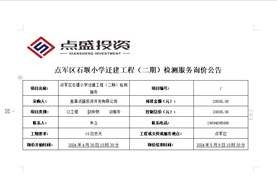 點(diǎn)軍區(qū)石堰小學(xué)遷建工程(二期)檢測服務(wù)詢價(jià)公告