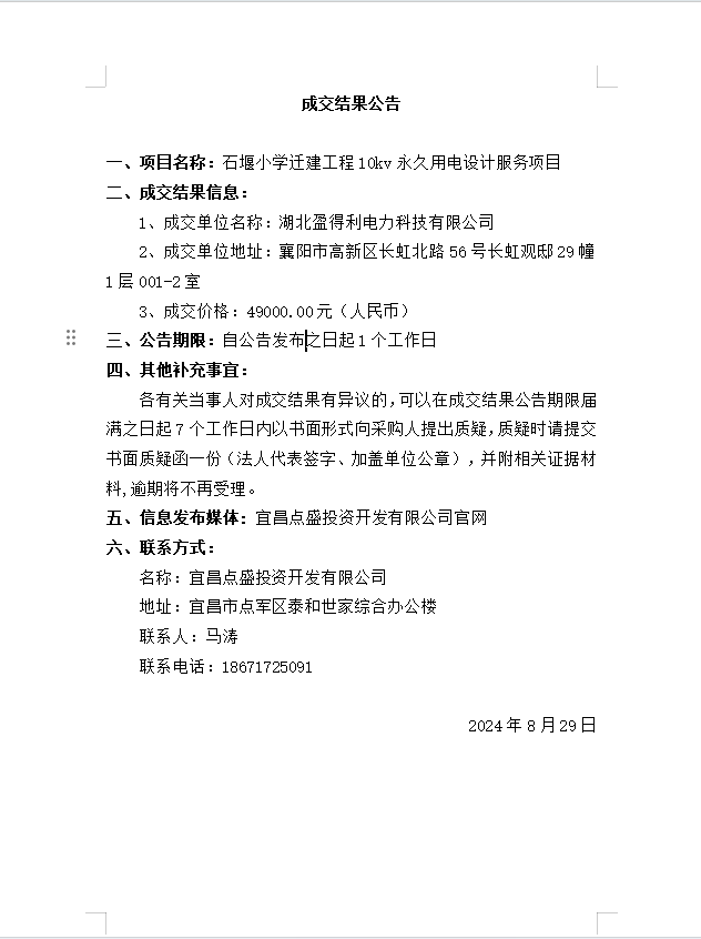 發(fā)布時間:2024/8/29 來源:宜昌點盛投資開發(fā)有限公司 訪問:1095