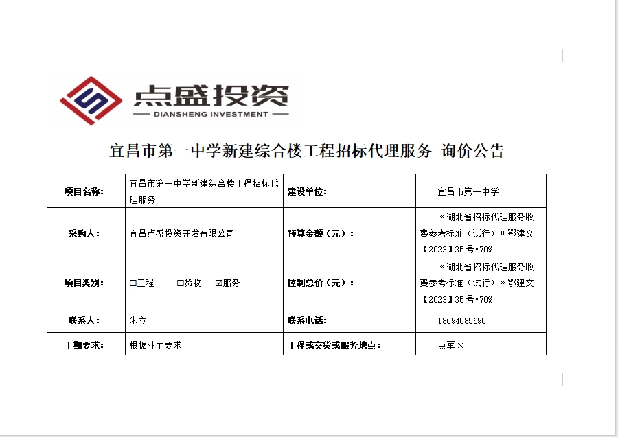 宜昌市第一中學(xué)新建綜合樓工程招標代理服務(wù)詢價公告