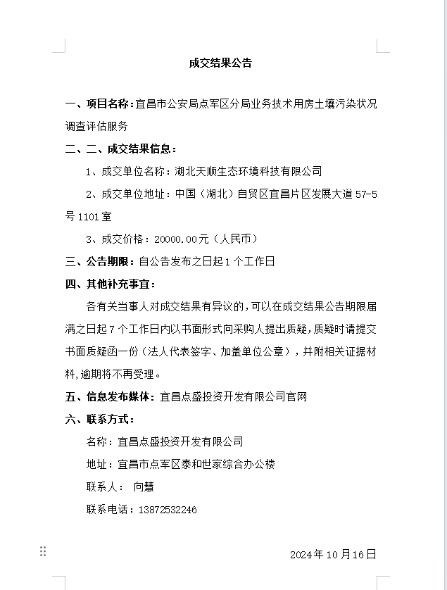 宜昌市公安局點軍區(qū)分局業(yè)務技術用房土壤污染狀況調查評估服務成交公告