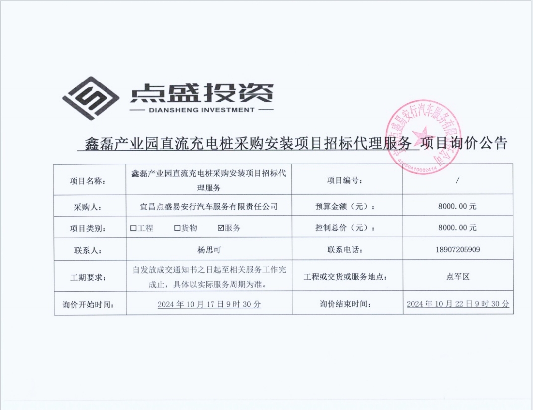 鑫磊產(chǎn)業(yè)園直流充電樁采購(gòu)安裝項(xiàng)目招標(biāo)代理服務(wù)詢(xún)價(jià)公告