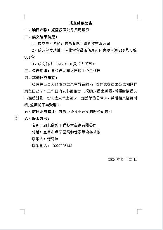 發(fā)布時間:2024/5/31 來源:宜昌點盛投資開發(fā)有限公司 訪問:3241