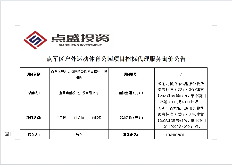 點(diǎn)軍區(qū)戶外運(yùn)動(dòng)體育公園項(xiàng)目招標(biāo)代理服務(wù)詢價(jià)公告