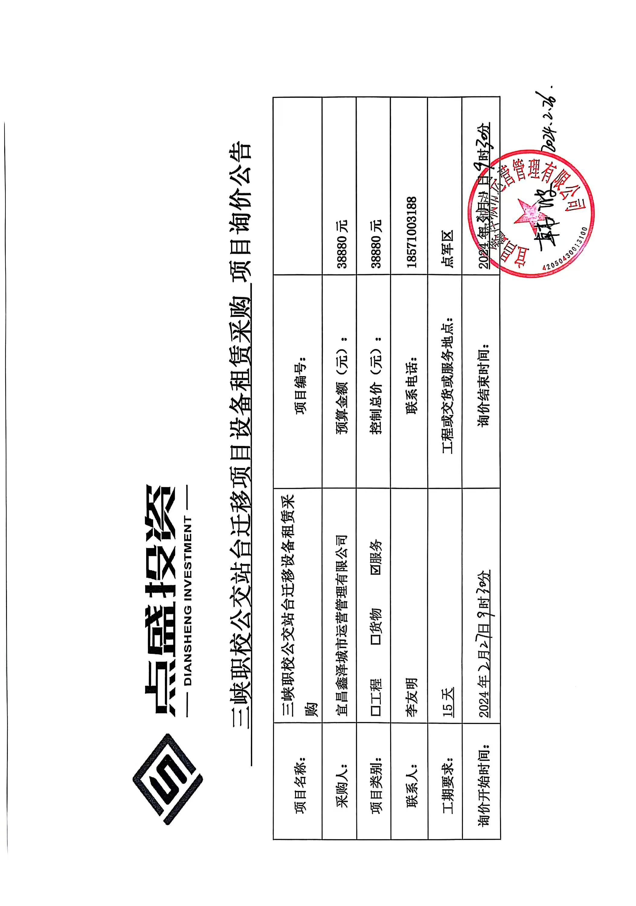 三峽職校公交站臺(tái)遷移項(xiàng)目設(shè)備租賃采購成交公告